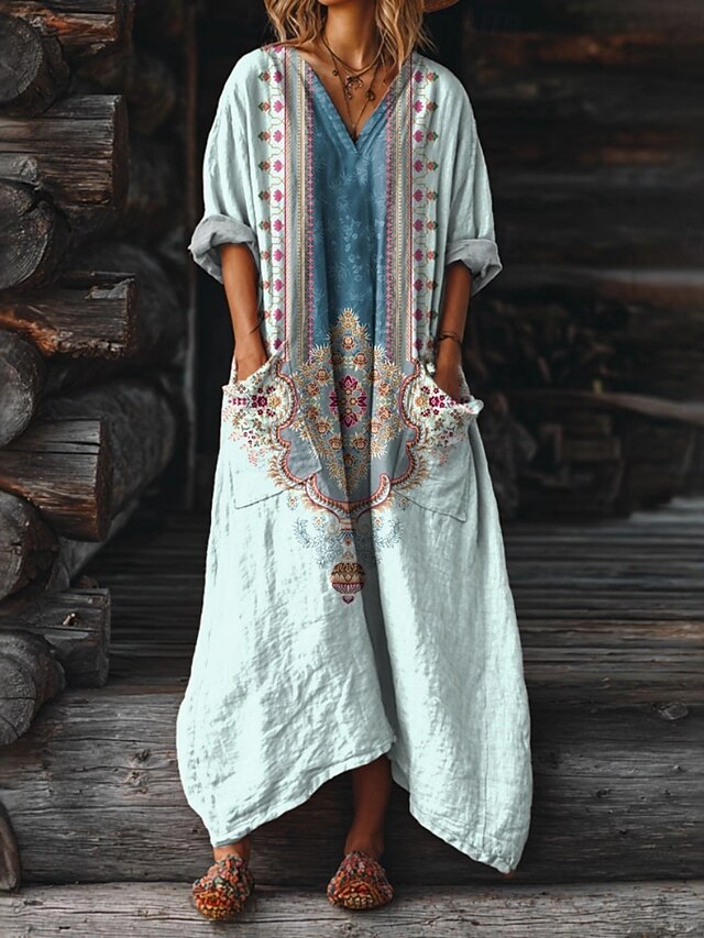 $53.99 - Women's Maxi Dress A Line Dress Vacation Casual Daily Regular Fit Loose Fit Floral Graphic Long Sleeve V Neck Pink Dark Pink Red Blue Summer Spring Fall 2025. Shop for cheap Boho Dress online? Buy at lightinthebox.com on sale today!