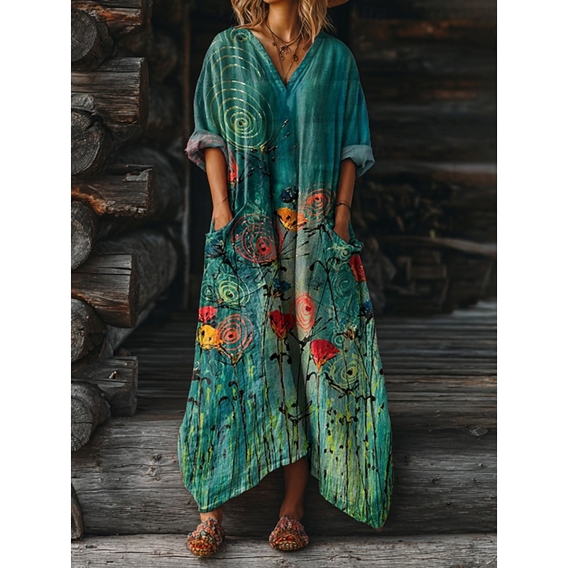 More information about Women's Maxi Dress A Line Dress Vacation Casual Daily Regular Fit Loose Fit Floral Graphic Long Sleeve V Neck Pink Dark Pink Red Blue Summer Spring Fall
