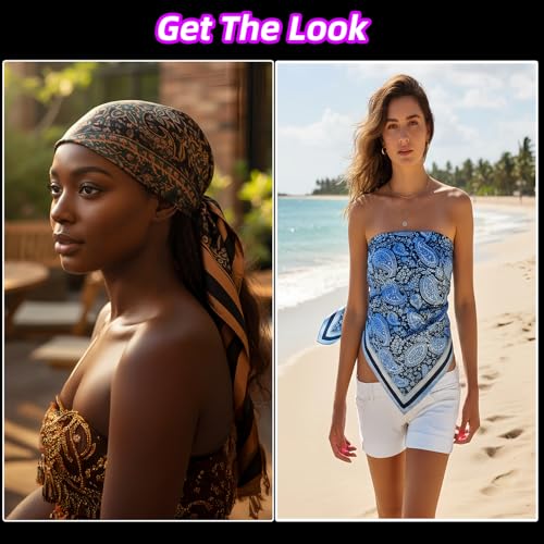 • 【Generous Square Scarf Size】With its spacious 35" x 35" (90cm x 90cm) dimensions, this large square scarf provides ample coverage for various styling needs. It serves perfectly as a hair scarf for women during sleep, a fashionable neck accessory, or even as a chic top for summer outfits.