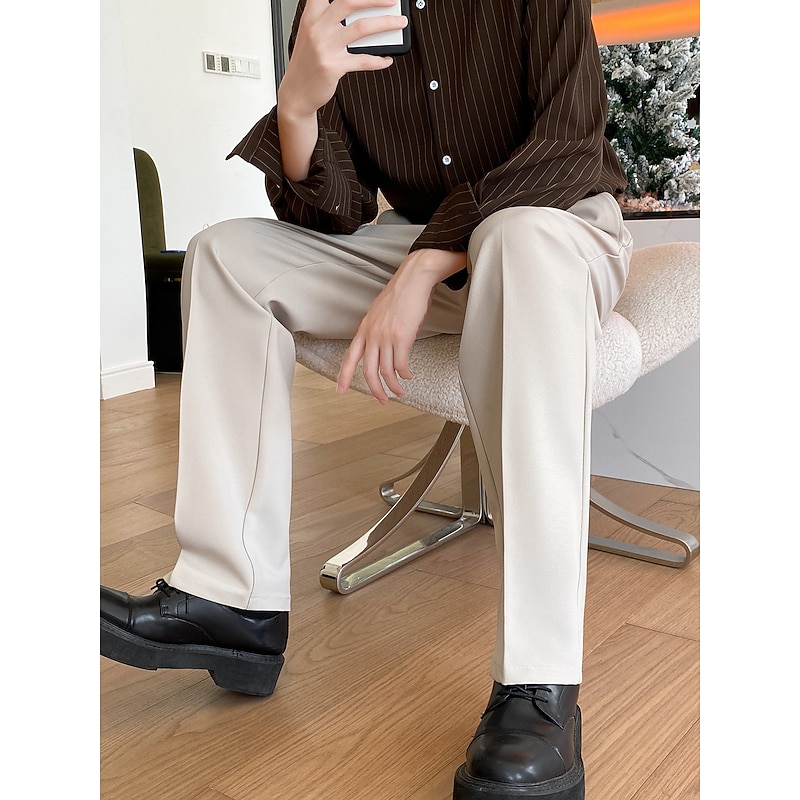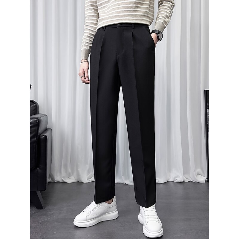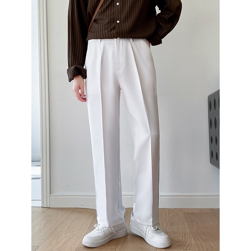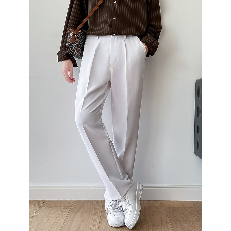 More information about Men's Graduation Dress Pants Trousers Suit Pants Wide Leg Straight Leg Plain Comfort Breathable Outdoor Daily Going out Fashion Casual Black White