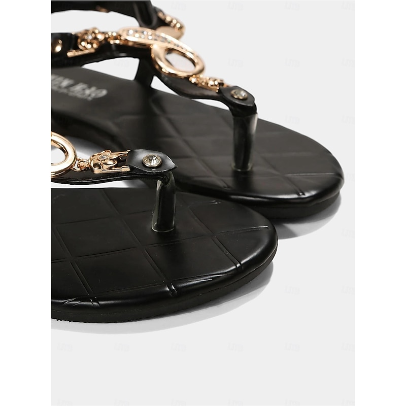 Women's Black Rhinestone T-Strap Sandals – Elegant Flat Summer Sandals for Casual, Beach, and Vacation Wear 1