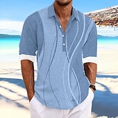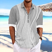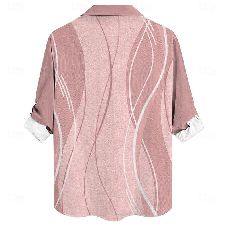 More information about Men's Lines / Waves Geometric Pattern Button Up Shirt Henley Shirt Long Sleeve Hawaiian Resort Outdoor Casual Summer Spring Fall Turndown Pink Blue Khaki Gray