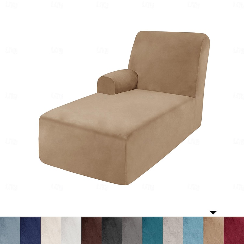 Velvet Chaise Cover Stretch Sectional Couch Covers for L Shaped Sofa Fitted Soft Chaise Lounge Cushion Cover Sofa Slipcover with Elastic Bottom 18