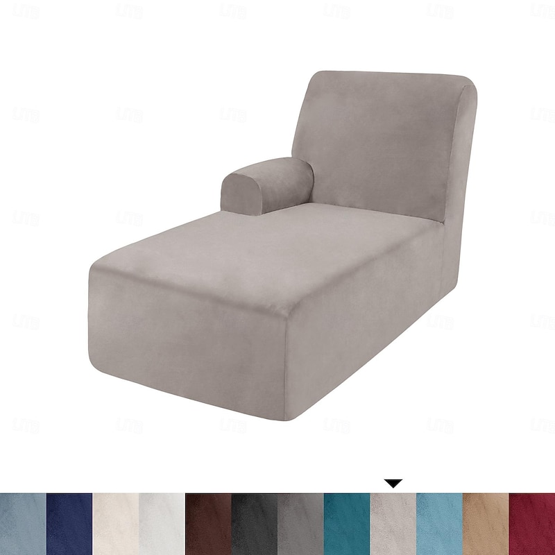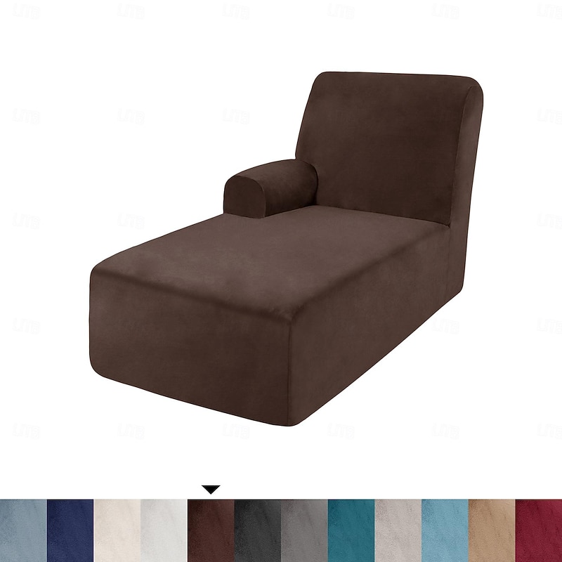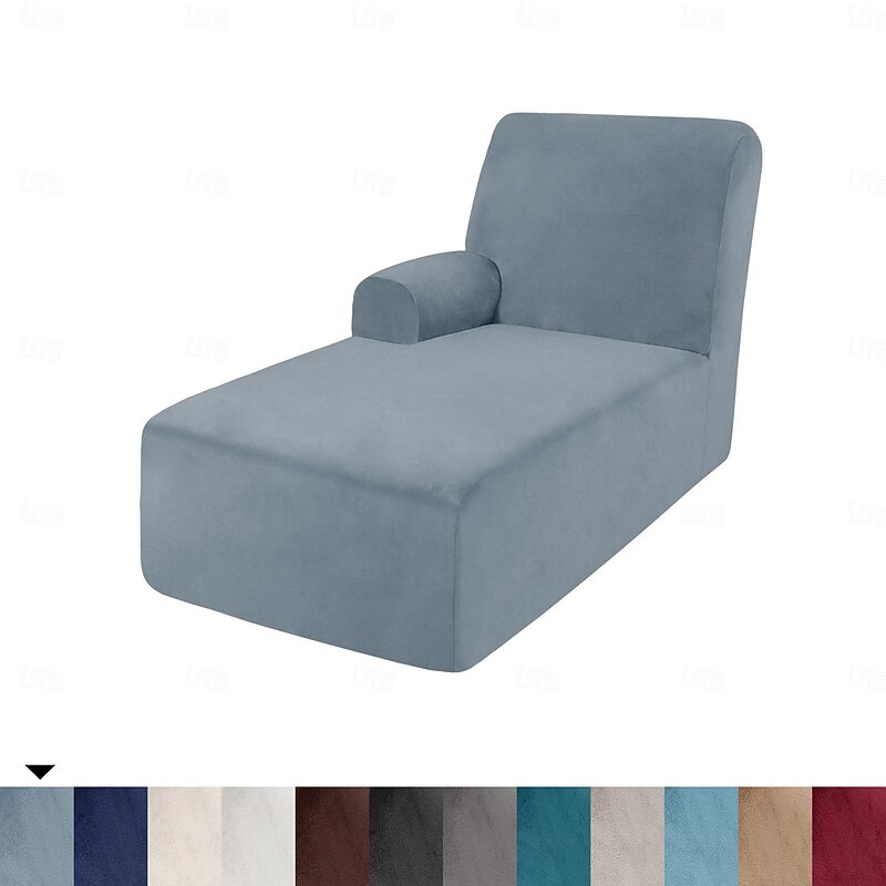 Velvet Chaise Cover Stretch Sectional Couch Covers for L Shaped Sofa Fitted Soft Chaise Lounge Cushion Cover Sofa Slipcover with Elastic Bottom 26