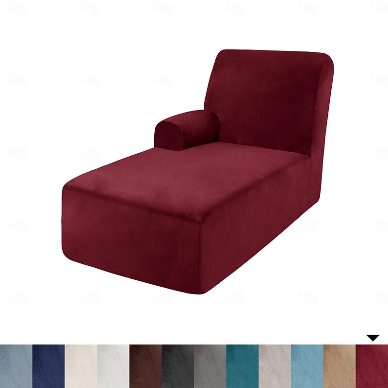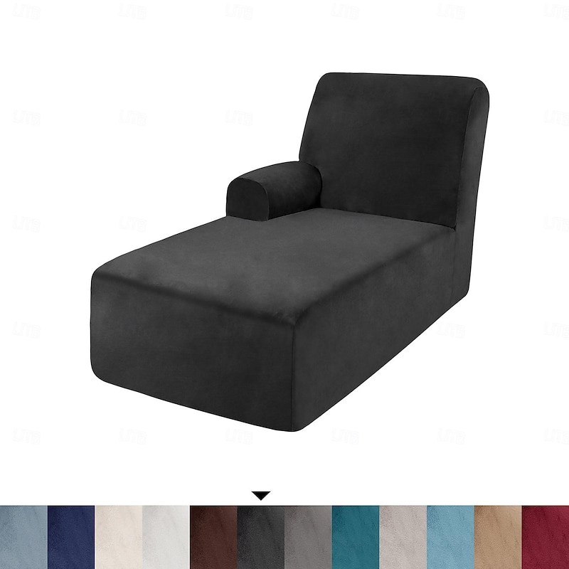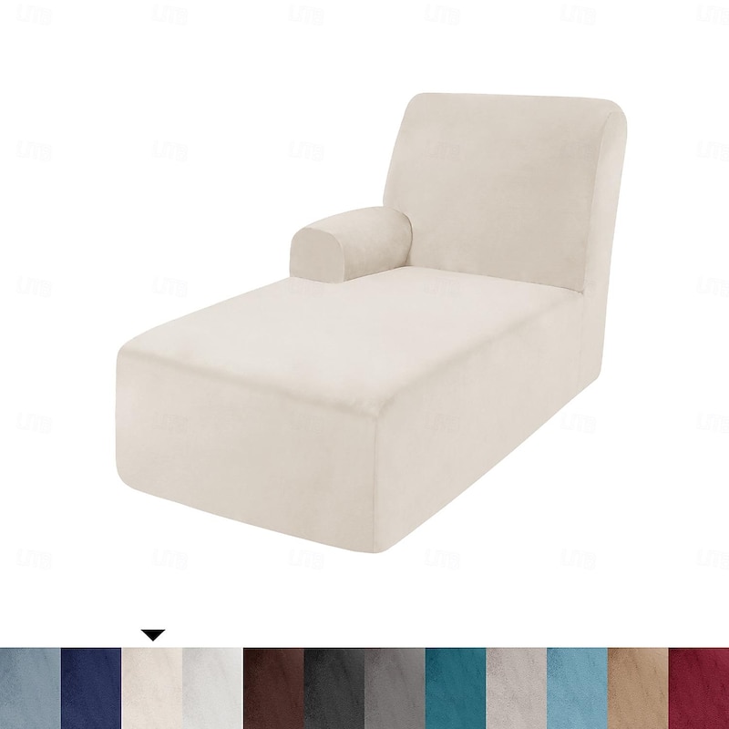 Velvet Chaise Cover Stretch Sectional Couch Covers for L Shaped Sofa Fitted Soft Chaise Lounge Cushion Cover Sofa Slipcover with Elastic Bottom 19