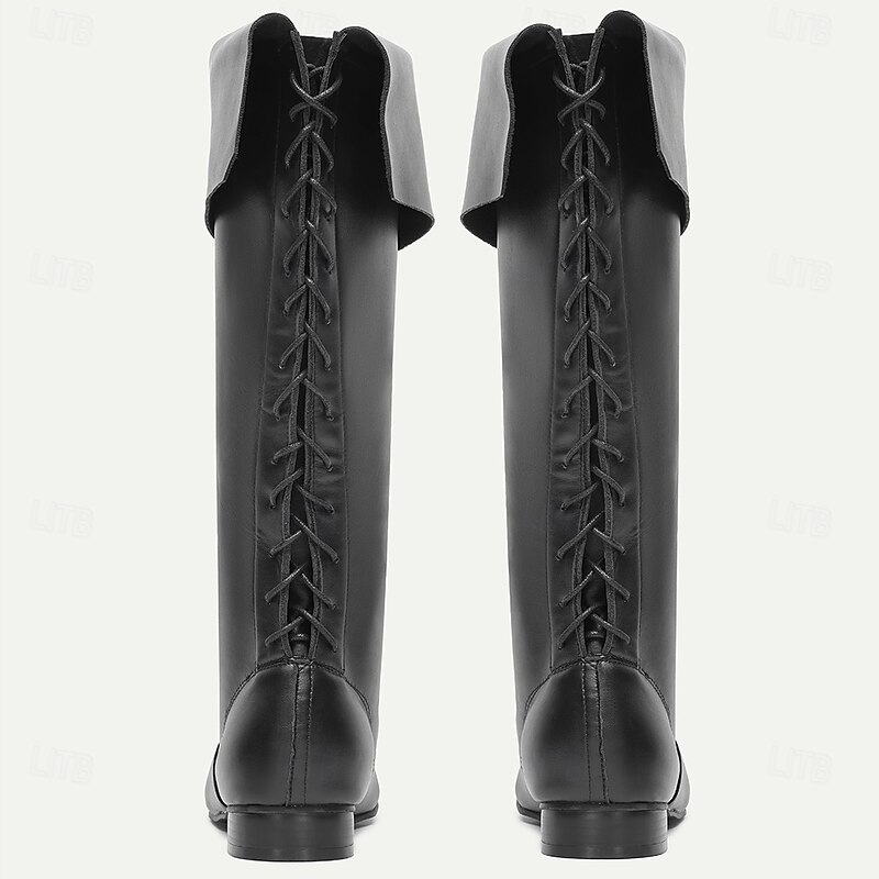 Men's Medieval Renaissance Tall Boots with Fold Over Cuff, Vintage Retro Costume Footwear for Cosplay, Stage Performances, LARP Events and Themed Parties 1