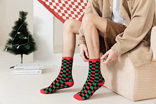 Gilbins Mens-Womens Christmas Holiday Fuzzy Socks with Grips Non Slip Skid Slipper Fluffy Hospital Winter Crew Sleep Socks 6