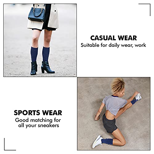 MDR Women's Extra Long & Heavy Slouch Cotton Wear at any Length Socks Made in USA 1 Pair Size 9 to 11 (Navy) 4