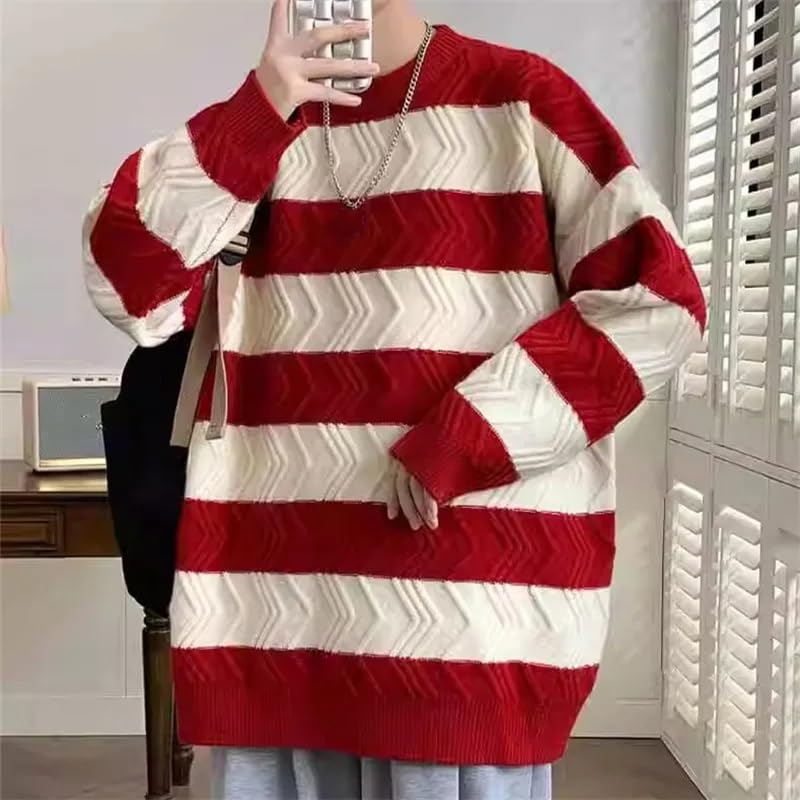 Autumn Winter Men's Loose Knit Pullovers Striped O-Neck Knitted Sweater Men Casual Streetwear 4