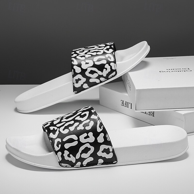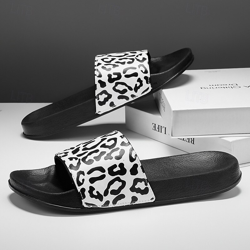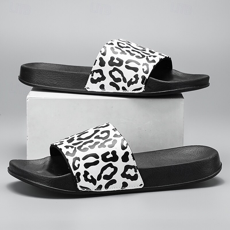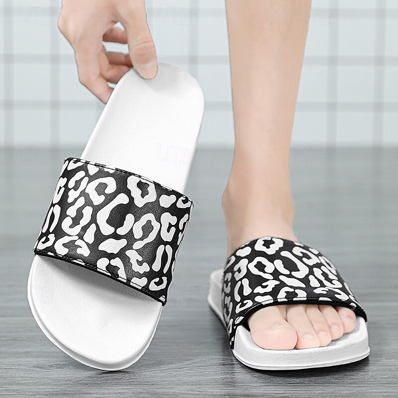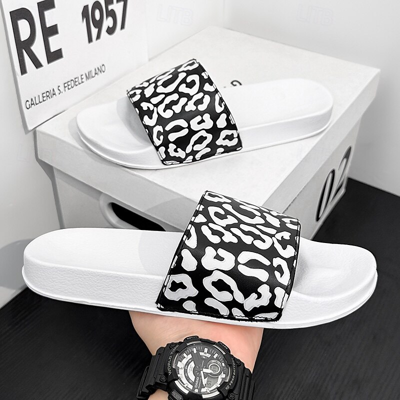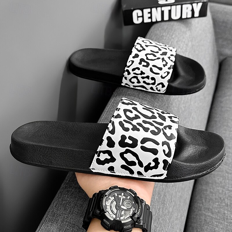 Men's Slide Sandals with Leopard Print - Stylish Casual Footwear for Summer and Beach Outings 2