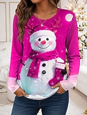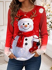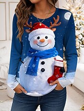 More information about Christmas Women's T Shirt Graphic Snowman Vintage Fashion Stylish Long Sleeve Round Neck Regular Tops Daily Weekend Print Red Blue Purple Green Fall Winter