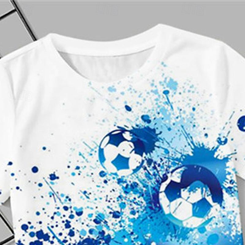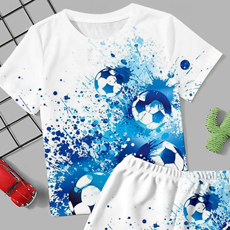 Boys 3D Football Tee & Pants Pajama Sets Short Sleeve 3D Print Summer Active Fashion Daily Kids 3-12 Years Crew Neck Home Causal Indoor Regular Fit 1