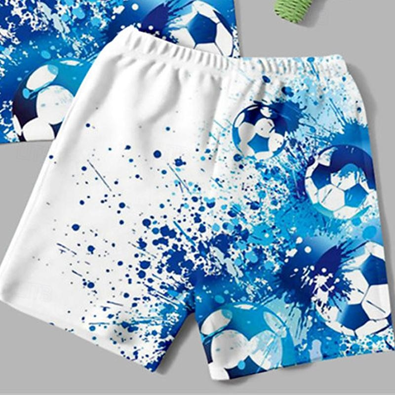 More information about Boys 3D Football Tee & Pants Pajama Sets Short Sleeve 3D Print Summer Active Fashion Daily Kids 3-12 Years Crew Neck Home Causal Indoor Regular Fit