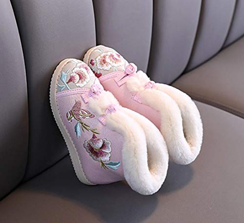 More information about Girls Cotton Winter Warm Embroidery Flat Shoes Fur Lined Button Snow Ankle Boots(Toddler/Little Kid)