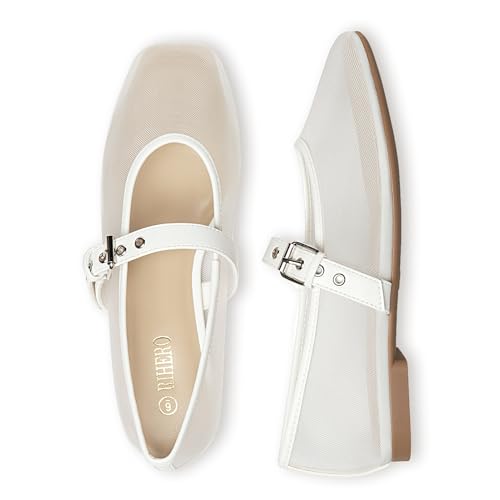 Rihero Women's Mesh Ballet Flats Ballerina White Mary Jane Flats Shoes Women Dressy Comfotable Size 7.5 1