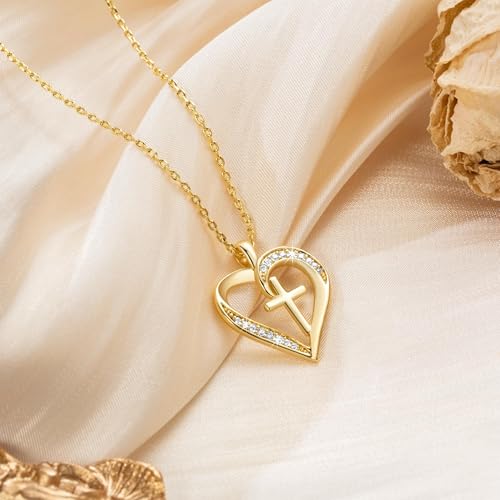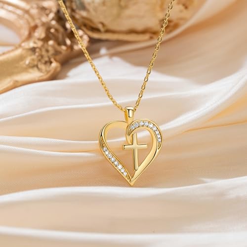 • [CLEVER DESIGN] This 14k gold cross necklaces for women combines heart and cross. The heart's outline of the 14k gold plated cross pendant wraps around the cross, giving the cross necklace for women meanings of romance. The cross necklace stands out, representing a gentle touch