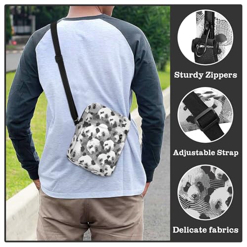 KLL Pointlism Pandas Black messenger bag crossbody Vegan Leather mens shoulder bag Casual Shoulder Hand Bag For Woman 6
