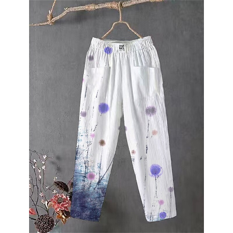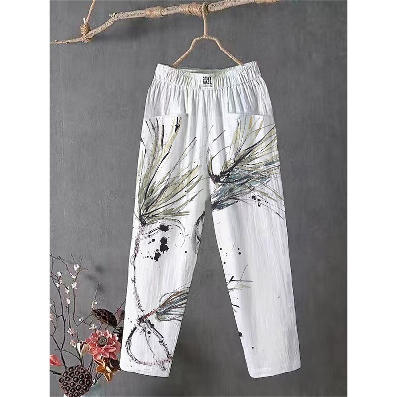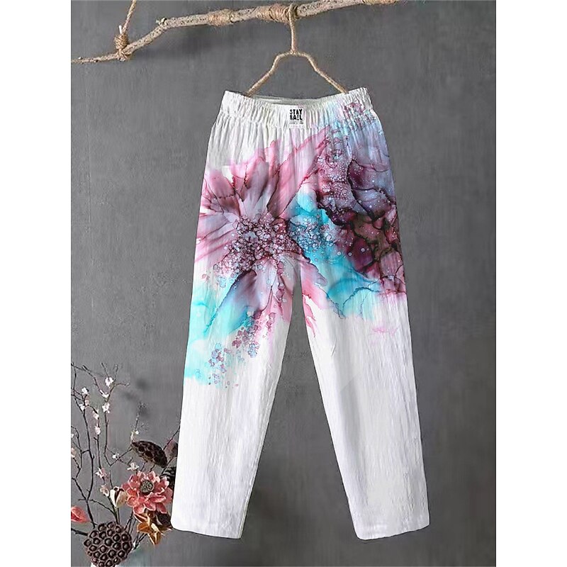 Women's Cotton Linen Pants Slacks Baggy Pants Comfort Chino Ankle-Length Medium Waist Flower Pocket Baggy Print Breathability Micro-elastic Outdoor Daily Light Pink White / White Black 4# Blue All 6