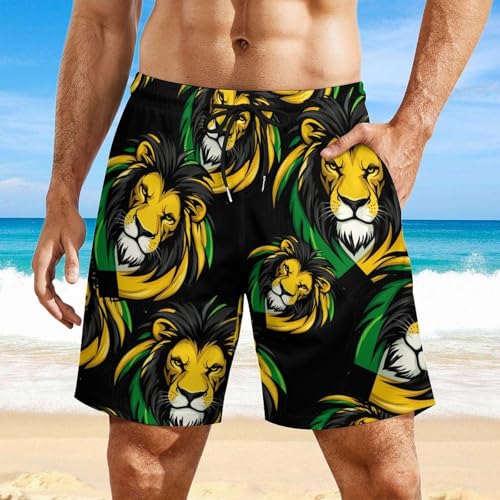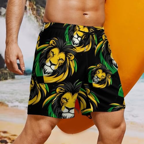 HOT ! Jamaican Flag Lion Mens Swim Trunks with Quick-Drying Lining Beach Shorts for Outdoor Sports