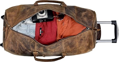 Weekender Leather Duffel Bag for Men Overnight Vintage Travel Duffle with Shoulder Strap Carry On Sports Gym 24 Inch Leather Luggage Carryall Cool Gifts for Him by Cureo 5