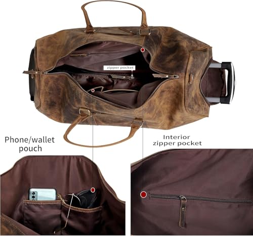 Weekender Leather Duffel Bag for Men Overnight Vintage Travel Duffle with Shoulder Strap Carry On Sports Gym 24 Inch Leather Luggage Carryall Cool Gifts for Him by Cureo 6