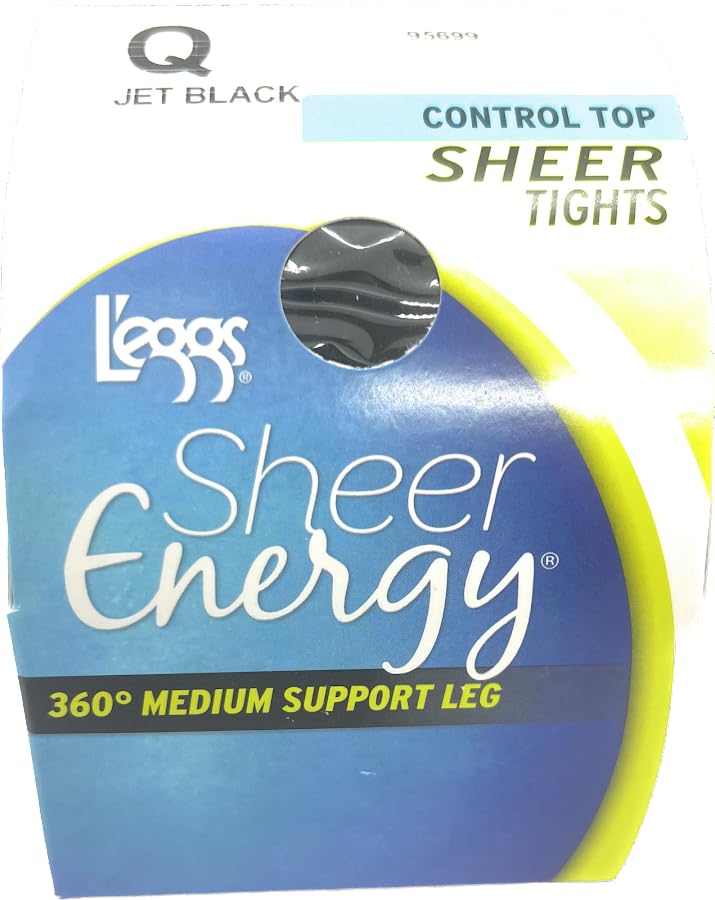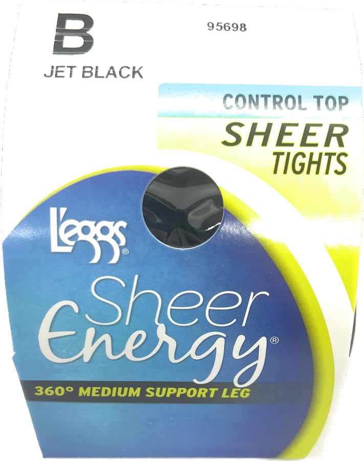 HOT ! Women's Sheer Energy Black Sheer Tights Control Top Sheer Toes 360 Medium Support Leg Black Pantyhose