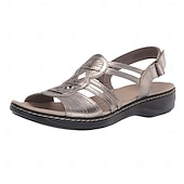 Highlights [Fabric] : Expertly crafted from premium patent leather, these sandals combine durability with a sleek, sophisticated look. The high-quality material ensures a comfortable fit that molds to the foot, providing both style and longevity. [Silhouette] : The sandals feature a modern wedge heel, offering a perfect balance of height and comfort. With a contoured design, the 2-3 inch heel provides a subtle lift and enhances the overall aesthetic, suitable for both casual and chic ensembles. [Design Highlights] : Showcasing a chic open-toe style, these sandals are adorned with elegant interwoven straps that create a captivating paisley pattern. The adjustable hook-and-loop closure at the back allows for a personalized and secure fit, while the decorative buttons add a vintage charm. The shoe is complemented by matching bags for a cohesive look. [Occasions] : Ideal for both daily outdoor activities and more formal gatherings, these versatile sandals effortlessly transition from casual settings to sophisticated events. Whether you're strolling through the park or attending a summer soirée, these sandals enhance any outfit. [Size Range] : Available in a variety of sizes, these sandals cater to a wide audience. Choose from US6 to US10.5 to find the perfect fit, ensuring comfort and style for every wearer.