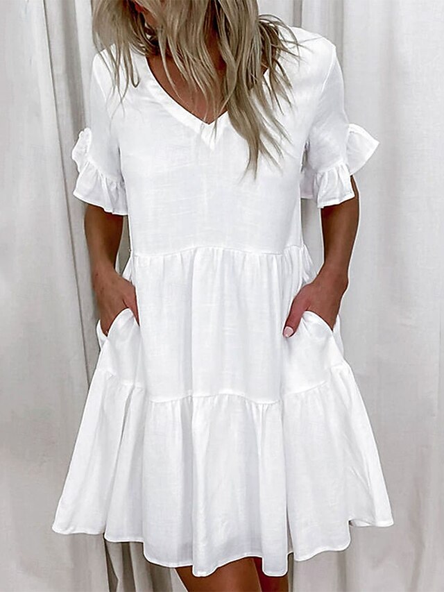 More information about Women's Mini Dress White Dress Casual Dress Ruffle Dress Puff Sleeve Dress Basic Casual Vacation Daily Regular Fit Plain Sleeveless V Neck White Yellow Blue Summer