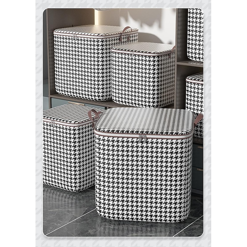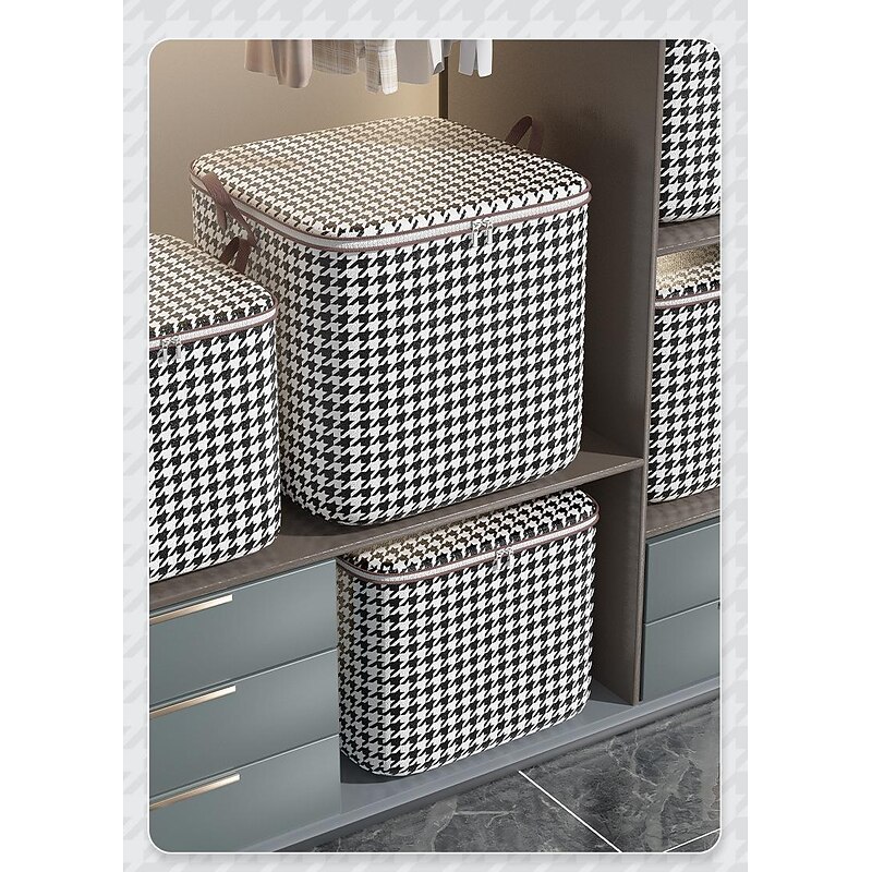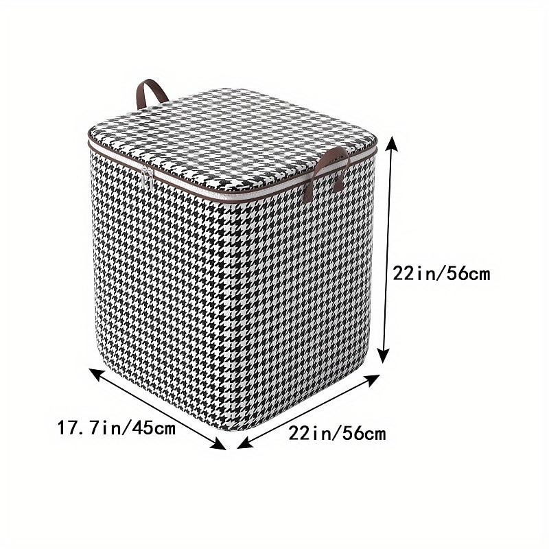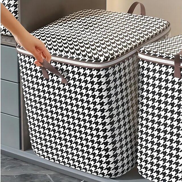 1pc Clothes Storage Bag, Houndstooth Pattern Foldable Fabric Storage Bag, Large Capacity Waterproof Moisture-proof Cotton Quilt Storage Bag, Home Organization And Storage 12