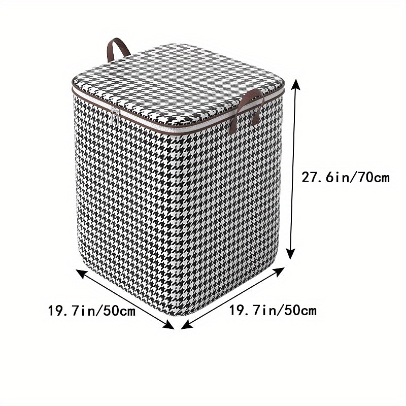 1pc Clothes Storage Bag, Houndstooth Pattern Foldable Fabric Storage Bag, Large Capacity Waterproof Moisture-proof Cotton Quilt Storage Bag, Home Organization And Storage 15