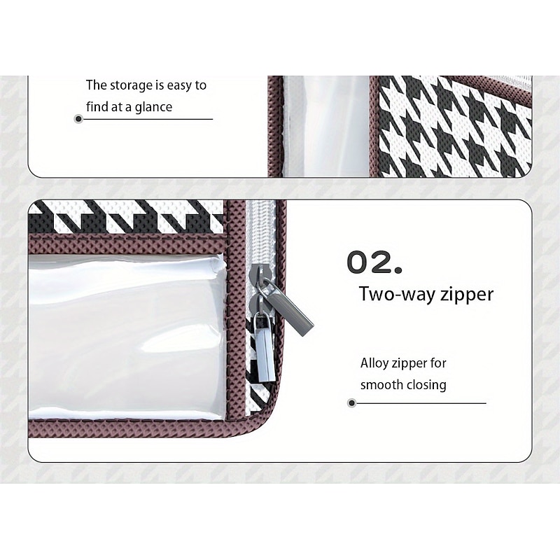 1pc Clothes Storage Bag, Houndstooth Pattern Foldable Fabric Storage Bag, Large Capacity Waterproof Moisture-proof Cotton Quilt Storage Bag, Home Organization And Storage 11