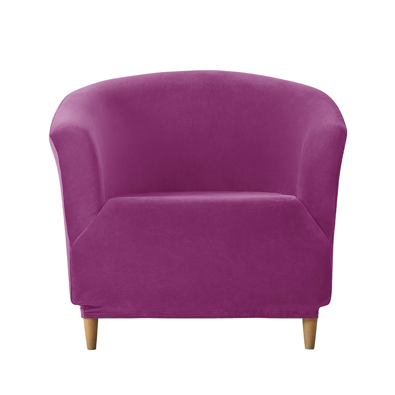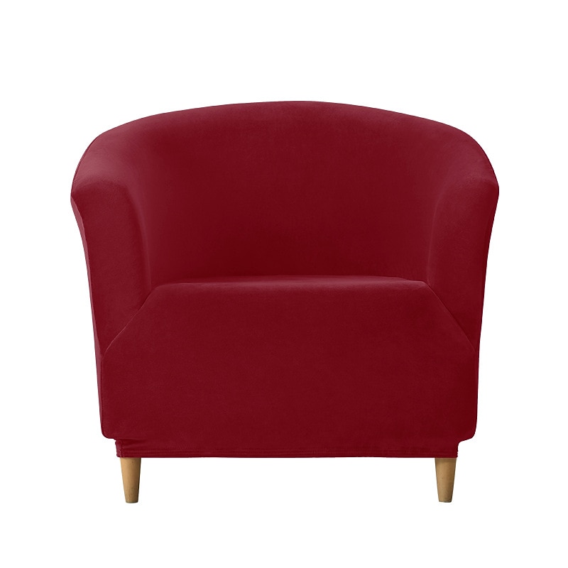 Velvet Club Chair Barrel Chair Slipcover Burgundy Stretch Armchair Covers 1-Piece Club Tub Chair Covers Sofa Cover Couch Furniture Protector Cover Plush Spandex Couch Covers for Living Room 5