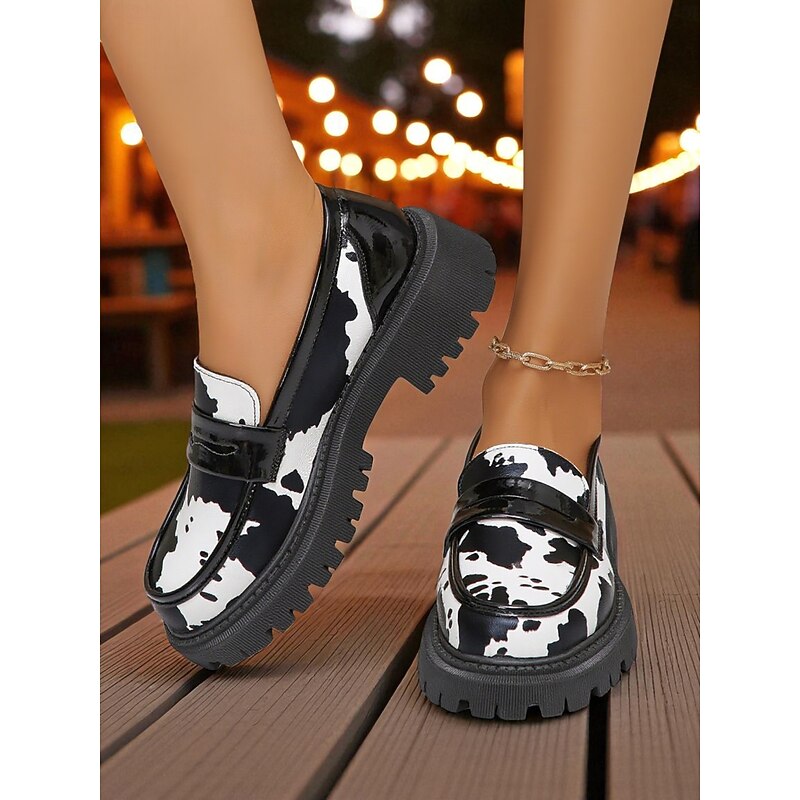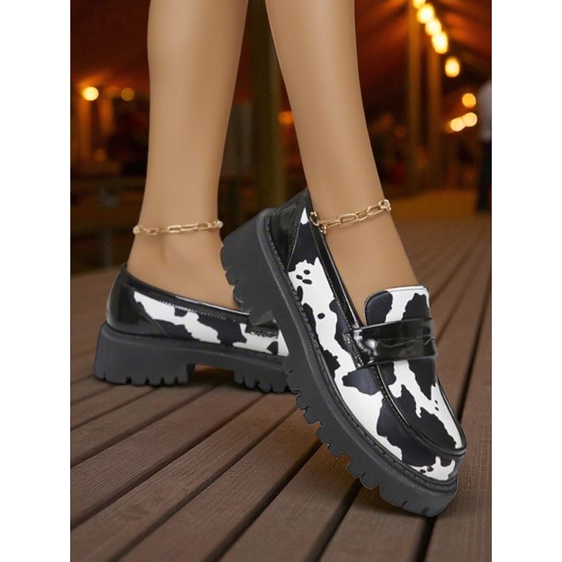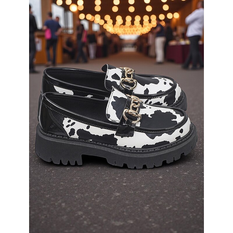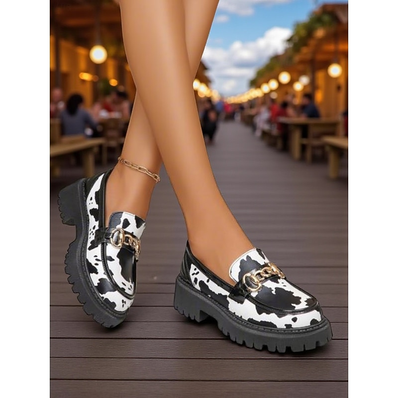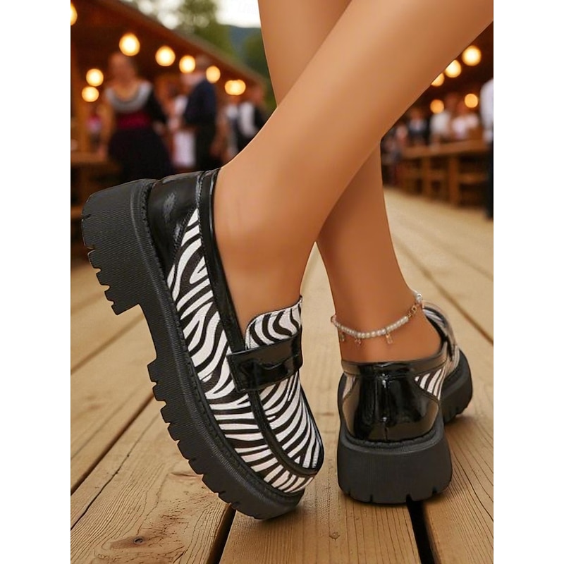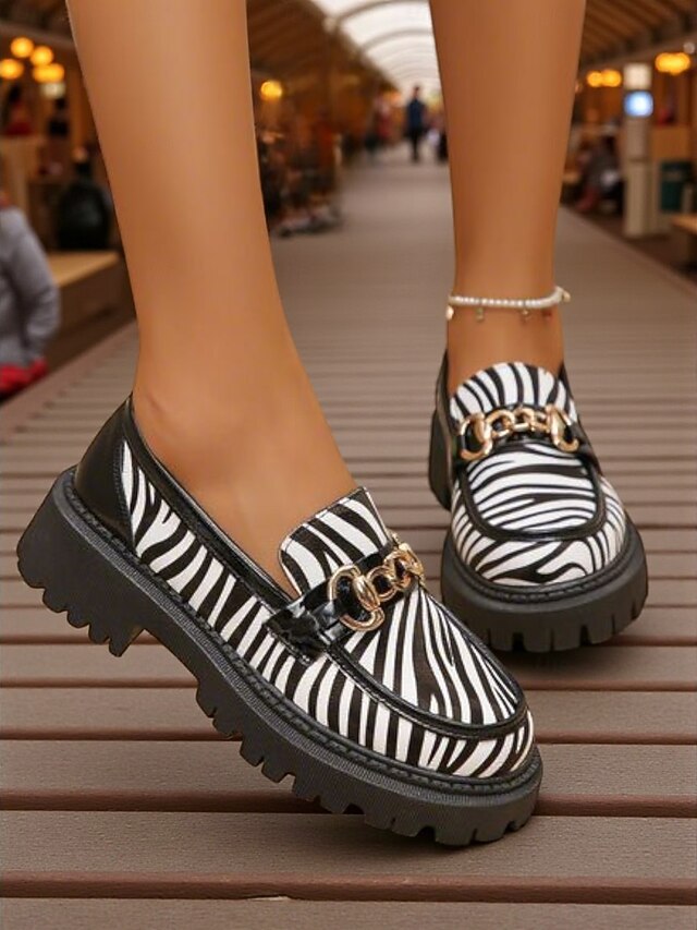 Women's Zebra Print Loafers – Chunky Platform Slip-On Shoes with Gold Chain Detail, Bold Animal Print Fashion Flats for Casual Outfits, Streetwear and Oktoberfest 17
