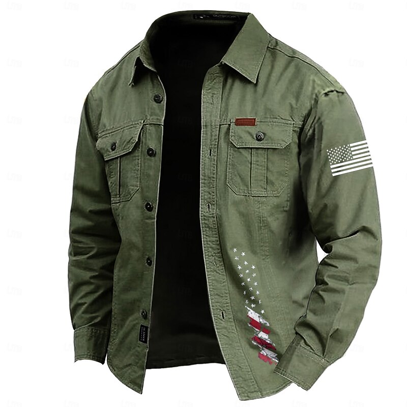 More information about Men's American US Flag Work Shirt Western Shirt Cargo Shirt Long Sleeve Casual Tactical Sports & Outdoor Going out Winter Spring & Fall Turndown Print Black Army Green Blue Khaki