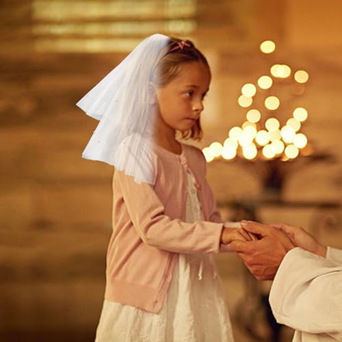 First Communion Veil for Girls,First Communion White Veil and Gloves Set,Girls' First Communion Veils,First Holy Communion Veil for Girls,Flower Girl Veil,First Holy Communion Accessories for Kids 4