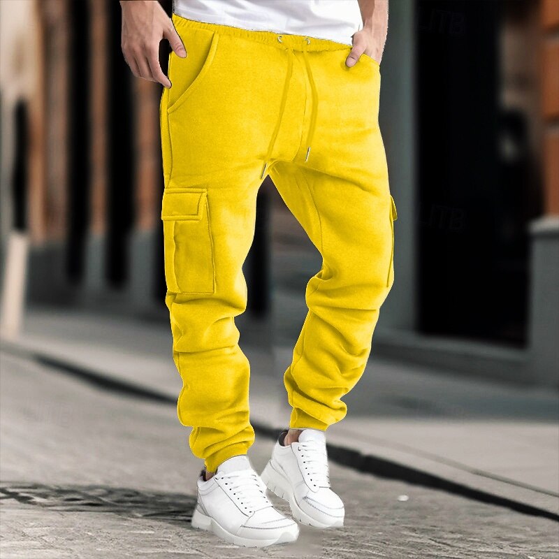 HOT ! Men's Cargo Pants Trousers Cargo Sweatpants Elastic Waist Multi Pocket Elastic Cuff Plain Wearable Outdoor Daily Camping & Hiking Fashion Classic Black Yellow