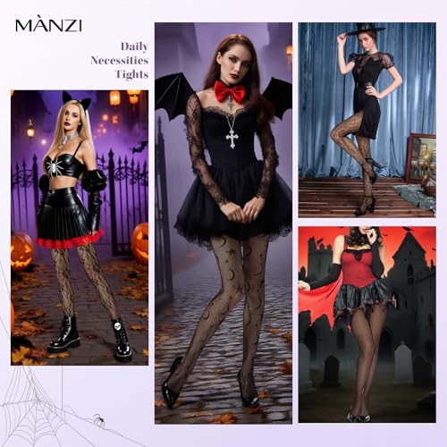 HOT ! MANZI 2 Pairs Women's Patterned Fishnet Tights Floral Lace Fishnets Stockings High Waist Goth Pantyhose