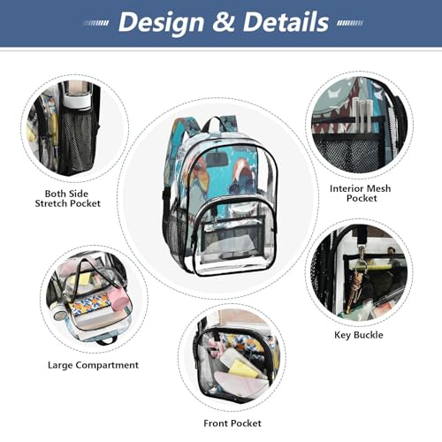 Cartoon Shark Drive Car Clear Backpack Heavy Duty See Through Transparent PVC BookBag for Kids Boy Girl School Work 6