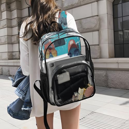 • Clear Plastic Backpack, Zipper closure, adjustable Padded shoulder straps