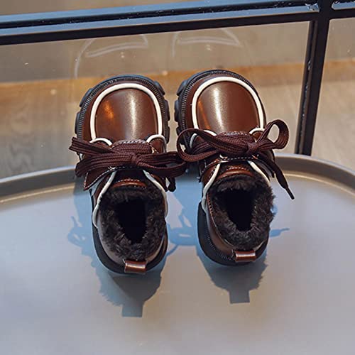 Fashion Winter Children Boots Boys Girls Snow Boots Non Slip Thick Soled Flat Bottom Plush Warm Lace Up Booties (Brown, 4-4.5 Years Toddler) 7