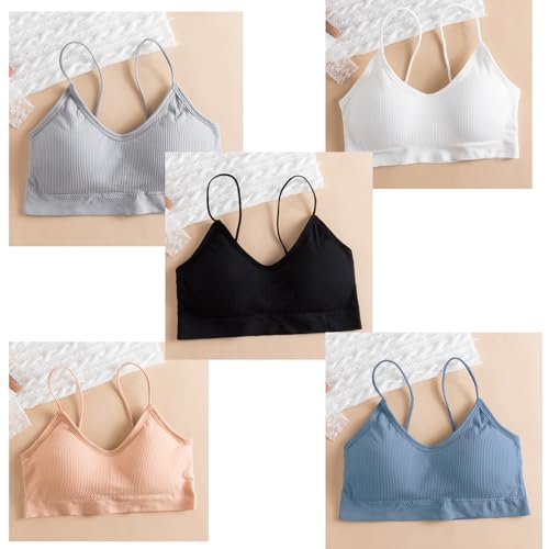 sizzling ! 5 Pieces Cami Bras - Women's V-Neck Padded Seamless Straps Bralette Everyday Basic Sleeping Bra for Women Girls