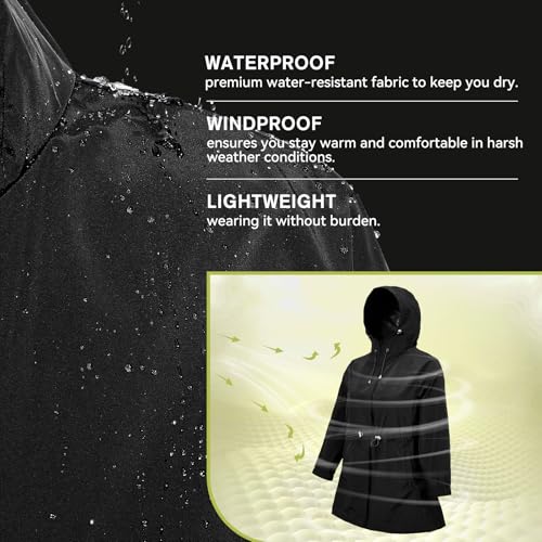 • 【Lightweight & Quick Dry】:Our lightweight rain jacket is made of superior waterproof coated fabric, which keeps you dry and cool in every rainy days. Thanks to the polyester spandex fabric with higher density, light rain or snow is not easy to penetrate. With a waterproof zip and protective hood for enhanced full body coverage, it's a must-have for spring's changeable weather.