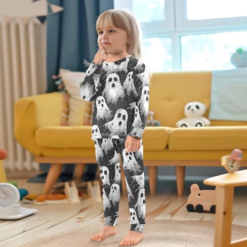 Pajama Sets Long Sleeve Ghostly Figures on Dark Background velvety Comfy Sleepwear 2 Piece PJS 3-8T