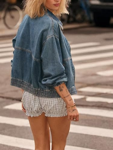 More information about Women Long Sleeve Denim Jacket Oversized Zipper Collared Fall retro Jean Tops Coats