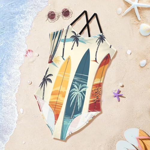 Girl's One Piece Swimsuit Tropical Surfboard Beach Bathing Swimwear 1