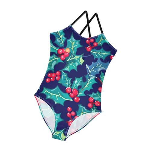 KLL Christmas Holly Leaves Toddler Girl 1 Piece Swimsuit Summer Swimming Suits Adjustable Strap prompt Dry