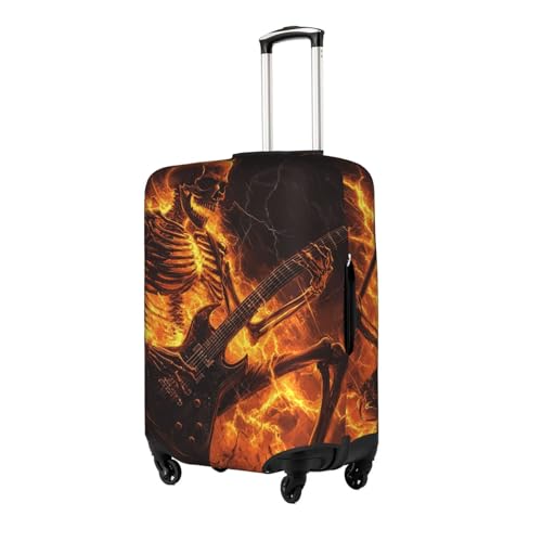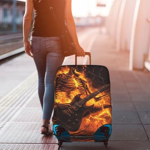 Skeleton Playing An Electric Guitar In Fire Travel Luggage Cover Elastic Suitcase Protector Washable Baggage Covers For Trunk Case Fits 25-28 Inch Luggage