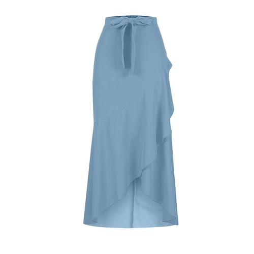 Womens Fall Skirts 2025 Elegant High Waisted Irregular Ruffle Hem Long Maxi Skirt Tie Front Cocktail Wedding Outfits