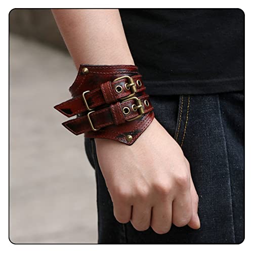 Punk Rock Belt Buckle Wristband Wide Leather Arm Cuff Bracelet 6