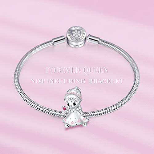 FOREVER QUEEN Charms fit Charms Bracelet 925 Sterling Silver Little Princess Bead Charms for Bracelet and Necklace Jewelry Gift with Gift Box